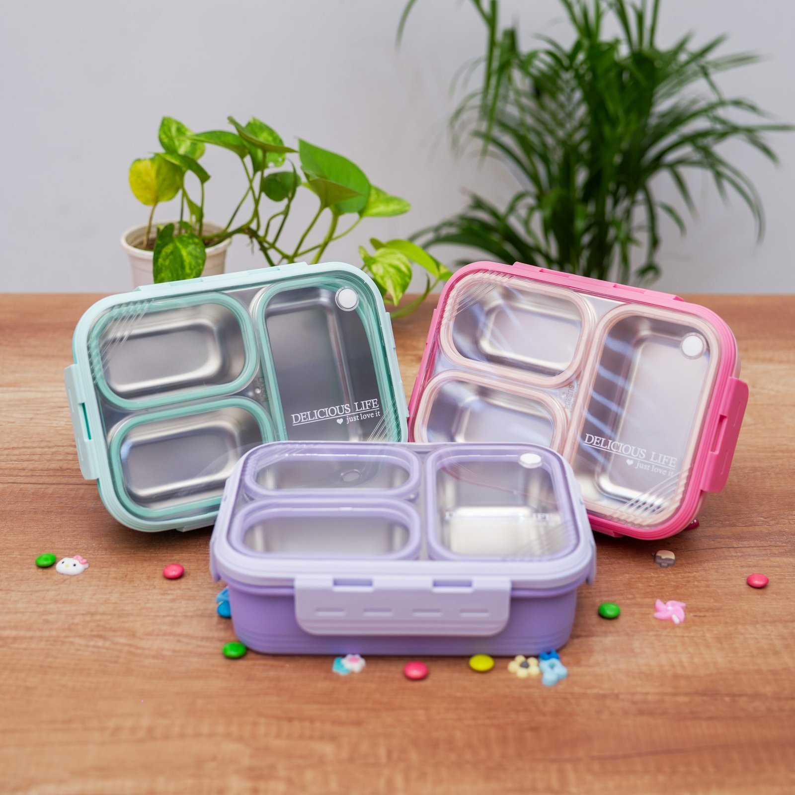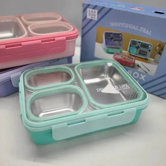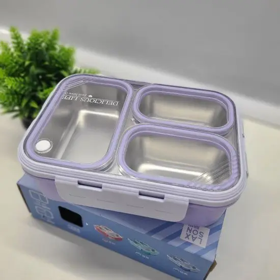 3 compartment Leak proof Steel Lunch Box -620ml