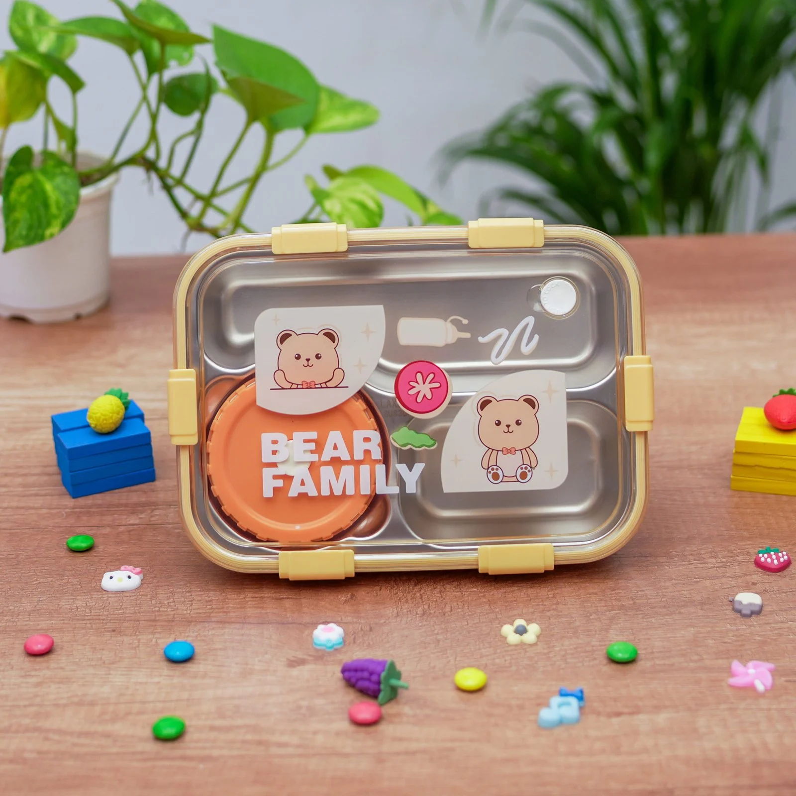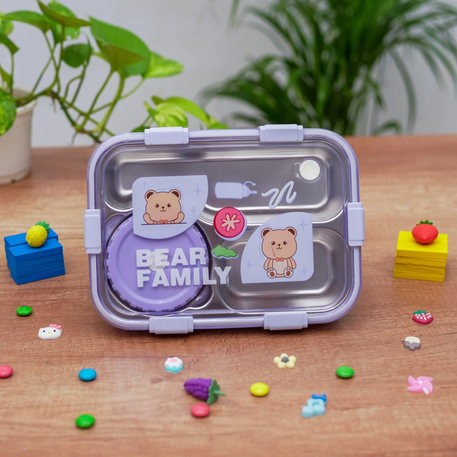 Bear Family Leak Proof Lunch box Stainless Steel Box with 1 Spoon & Chopstick 3 Containers Lunch Box (750 ml, Thermoware)