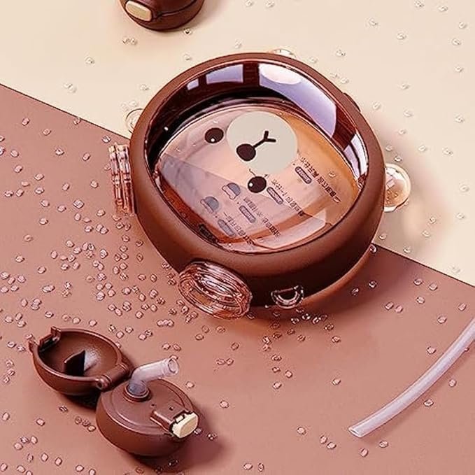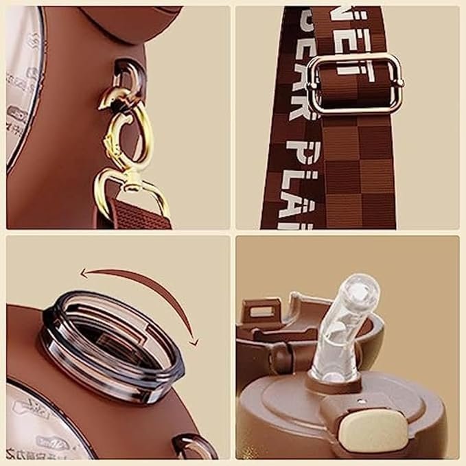 Kids Drink, Kids, Cute, Shoulder Strap, Adjustable, Cold Insulation, Multi-purpose, Water Bottle with Straw (Brown) 500ML