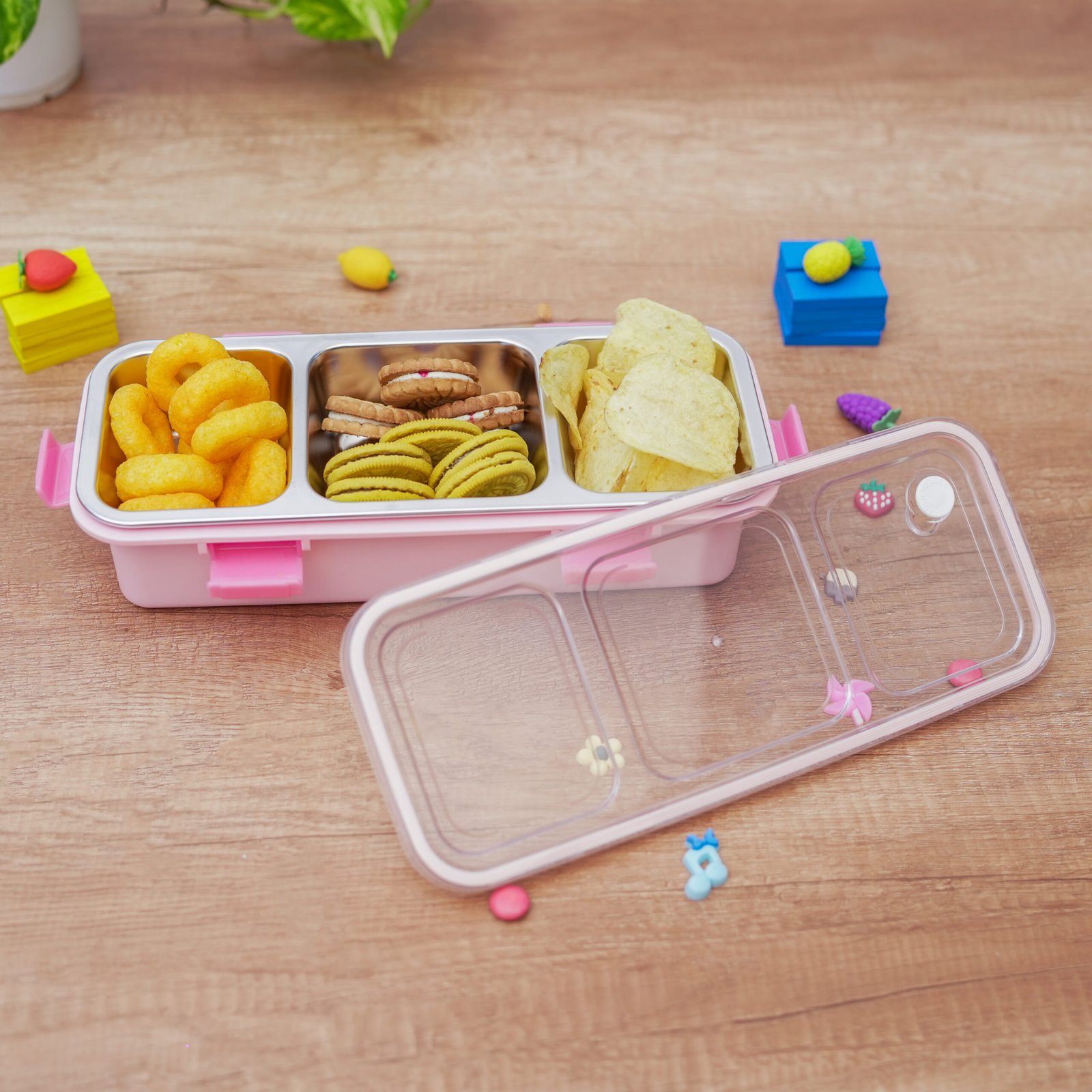 - This 3 Compartment box makes it easier to carry variety of food items.