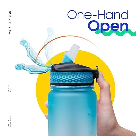 MERISH Plastic MultiColor Motivational Water Bottle 1000 ML SIPPER Mix Colors (Blue)