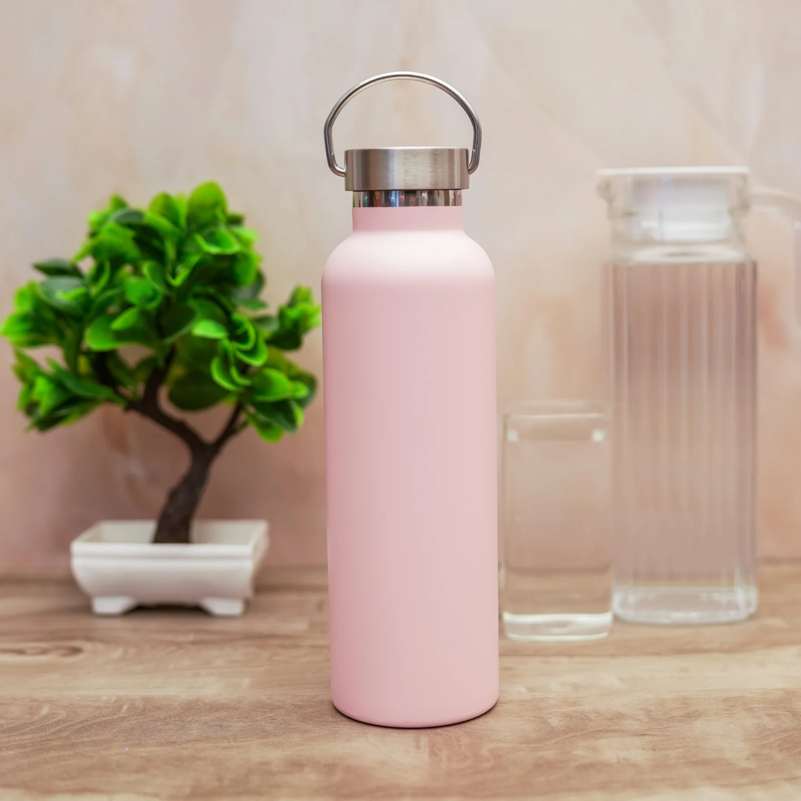 Pink Stainless Steel Water Bottles,20 Ounce Vacuum Insulated Double Wall Travel Bottle with Leak Proof Lid of Handle,Metal Reusable Standard Mouth Flask Thermoses for School,Hikers,Gift