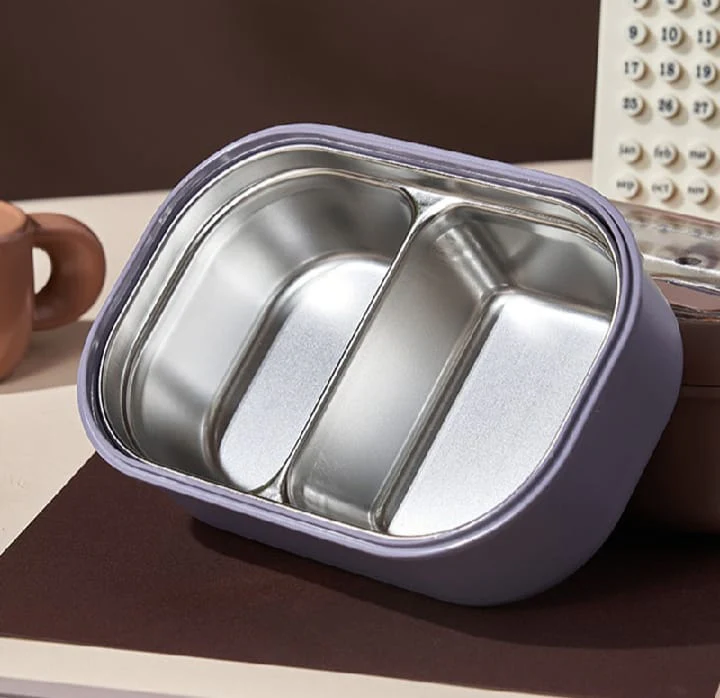 2.2 Compartments for Balanced Diet: The stainless steel lunch box features 2 compartments to store hot meals, fruits, salads, vegetables to achieve a balanced diet. The bottom compartment can add hot water to heat and keep food warm