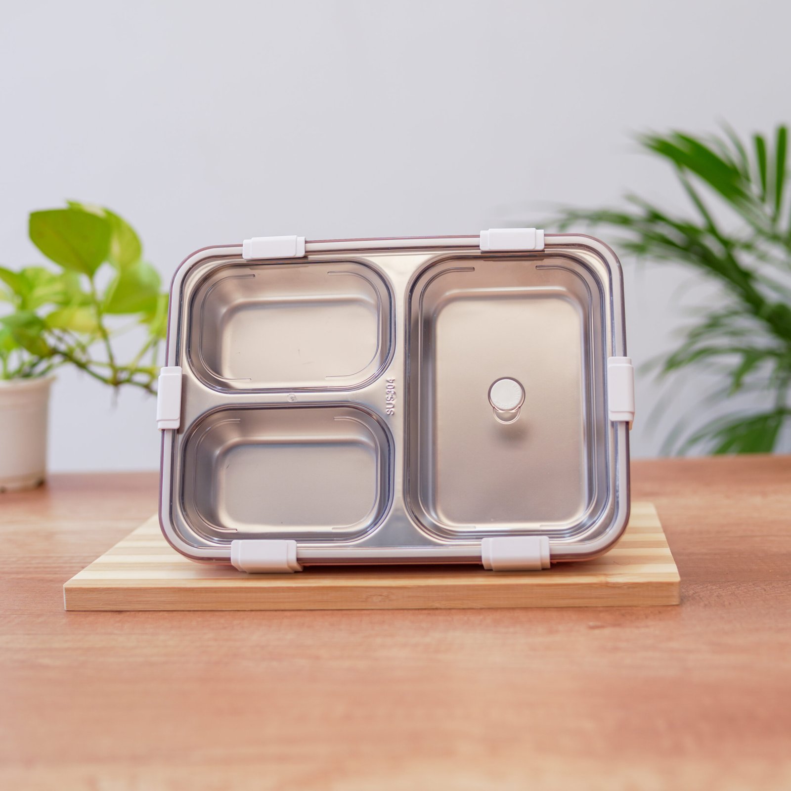 Stainless Steel 3 Container Leak Proof Lunch Box 3 Containers Stainless Steel