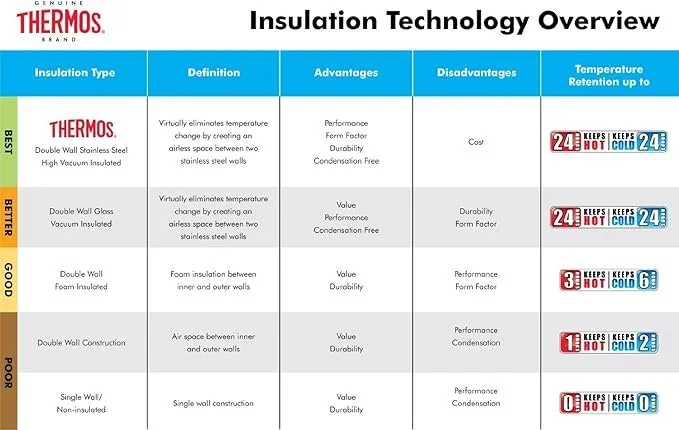 - Thermos vacuum insulation technology locks in temperature to preserve flavor and freshness to keep beverages hot for 18 hours or cold for 24