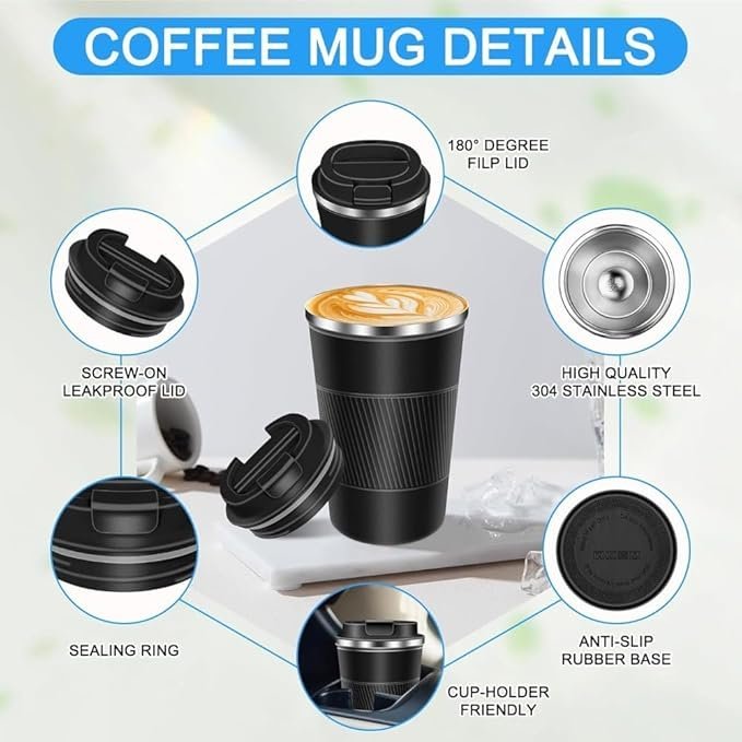 • No Spills, Secure Lid: The mug features a secure, airtight lid with a silicone seal that ensures your drink stays inside, even if the mug tips over. This means you can confidently take it with you wherever you go without worrying about leaks or spills.