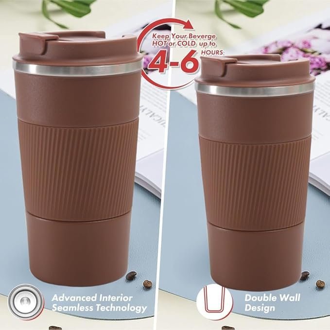 Travel Coffee Mug (380ml, Brown) with Grip
